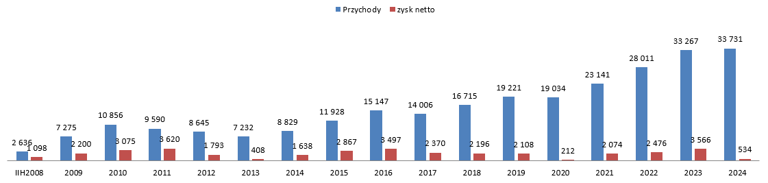 | Przychody netto ze sprzedaży | 3 267 | 9 028 | 10 846 | 9 590 | 8 645 | 7 232 | 8 829 | 11 928 | 15 147 | 14 006 | 16 715 | 19 221 | 19 034 | 23 141 | 28 011 | 33 267 |
